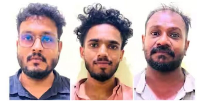 മലപ്പുറം ഏറനാട് താലൂക്കിൽ കാവന്നൂർ പഞ്ചായത്ത് ഒന്നാം വാർഡിൽ എലിയാപറമ്പിൽ വീട്ടിൽ ഷെമീർ പൂന്തല (38), കാവനൂർ പഞ്ചായത്ത് ഏഴാം വാർഡിൽ വാക്കാലൂർ കിഴക്കേത്തല കടവിനടുത്ത് എടക്കണ്ടിയിൽ വീട്ടിൽ അബ്ദുൾ വാജിദ് (23), കാവന്നൂർ പഞ്ചായത്ത് 12-ാം വാർഡിൽ പൂന്തല വീട്ടിൽ ചെറിയോൻ എന്ന് വിളിപ്പേരുള്ള ഹാരിസ് (35) എന്നിവരാണ് അറസ്റ്റിലായത്. തട്ടിപ്പിലൂടെ ലഭിക്കുന്ന പണം അപ്പോൾ തന്നെ കുഴൽപണം കൈമാറ്റം നടത്തുന്ന ആളുകൾക്ക് വൻതുക കമ്മീഷൻ നൽകി അവർ നൽകുന്ന വിവിധ അക്കൗണ്ടുകളിലേക്ക് ഇന്റർനെറ്റ് ബാങ്കിങ്ങിലൂടെ മാറ്റി പണമായി സ്വീകരിക്കുന്നതാണ് തട്ടിപ്പുകാരുടെ രീതിയെന്ന് പൊലീസ് പറഞ്ഞു.