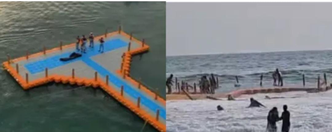 കൊട്ടിഘോഷിച്ച് നടപ്പിലാക്കിയ ഫ്ലോട്ടിംഗ് ബ്രിഡ്‌ജിൽ അപകടം; കൈവരി തകർന്ന് കുട്ടികൾ ഉൾപ്പെടെ കടലിൽ വീണു, 15 പേർക്ക് പരിക്ക്