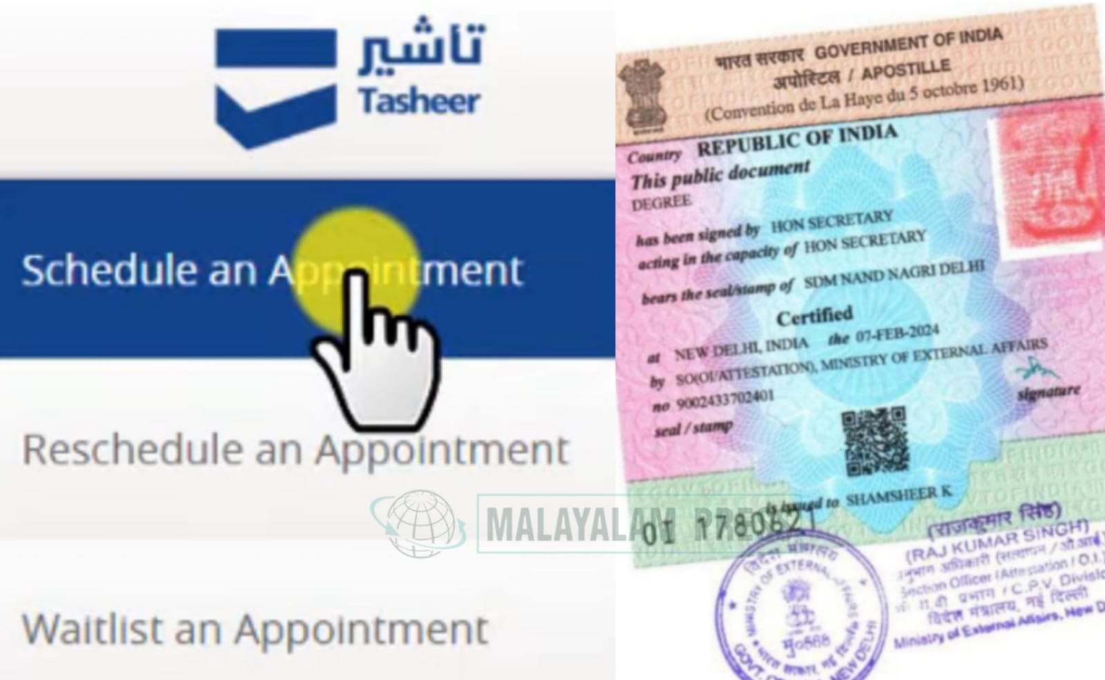 അപ്പോസ്റ്റൽ ചെയ്യേണ്ട സർട്ടിഫിക്കറ്റ് നാട്ടിലെ ജനറൽ സർവ്വീസ് ചെയ്യുന്ന ട്രാവൽസ് വഴി അപ്പോസ്റ്റാൽ അറ്റസ്റ്റേഷൻ കരസ്ഥമാക്കാം. മിനിസ്ട്രി ഓഫ് എക്സ്റ്റർണൽ അഫയേഴ്സ് ആണ് അപ്പോസ്റ്റാൽ അറ്റസ്റ്റേഷൻ നൽകുന്നത്. നിലവിൽ സഊദിയിലെ വിവിധ വിസ സ്റ്റാമ്പിങ് പൂർത്തീകരിക്കാൻ അപ്പോസ്റ്റൽ അറ്റസ്റ്റേഷൻ ആവശ്യമാണ്. രണ്ടായിരം രൂപ വരെ ഇതിനായി വിവിധ ട്രാവൽസുകൾ സർവ്വീസ് ചാർജ് ആയി ഈടാക്കുന്നുണ്ട്.