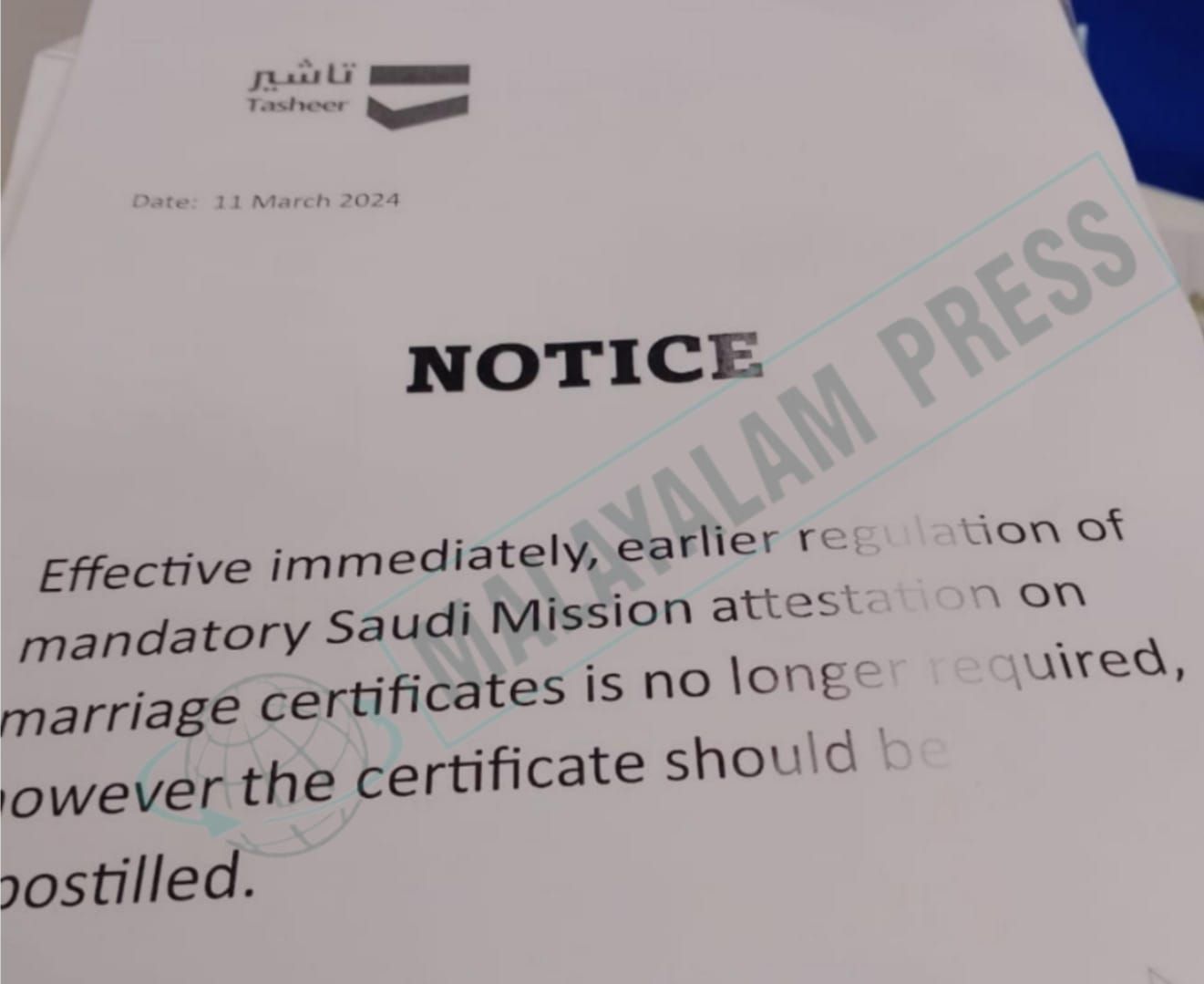 കോഴിക്കോട്: സഊദിയിലേക്ക് യാത്ര പോകാൻ ഉദ്ദേശിക്കുന്ന പ്രവാസി കുടുംബങ്ങൾക്ക് ആശ്വാസമായി പുതിയ തീരുമാനം. ഫാമിലി വിസ സ്റ്റാമ്പ് ചെയ്യാൻ വിവാഹ സർട്ടിഫിക്കറ്റ് അറ്റസ്റ്റേഷൻ വിഎഫ്എസ് എളുപ്പമാക്കി. ഇതോടെ, വിസ സ്റ്റാമ്പിങ് പൂർത്തീകരിക്കാൻ ഇനി മുതൽ വിവാഹ സർട്ടിഫിക്കറ്റ് അറ്റസ്റ്റ് ചെയ്യേണ്ട ഘട്ടങ്ങളിൽ എംബസി അറ്റസ്റ്റേഷൻ ആവശ്യമില്ല. പകരം അപ്പോസ്റ്റൽ മാത്രം മതി.