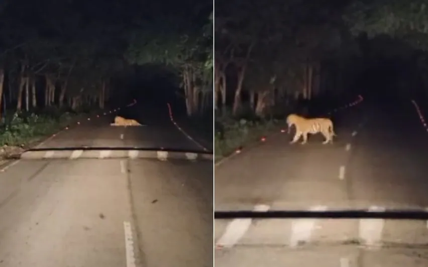 കോഴിക്കോട്: കൊടുംകാടിന് നടുവില്‍ കെ.എസ്.ആര്‍.ടി.സി. ബസ് ‘തടഞ്ഞ്’ കടുവ. ശനിയാഴ്ച രാത്രി ബന്ദിപ്പുരിലാണ് സംഭവം. ബെംഗളൂരുവില്‍നിന്ന് രാത്രി എട്ടുമണിക്ക് കോഴിക്കോട്ടേക്ക് പുറപ്പെട്ട സ്വിഫ്റ്റ് സൂപ്പര്‍ ഫാസ്റ്റ് ബസ്സിലെ യാത്രക്കാര്‍ക്കാണ് അപ്രതീക്ഷിതമായി അപൂര്‍വദൃശ്യത്തിന് സാക്ഷിയാകാന്‍ സാധിച്ചത്. ബസ്സിലുണ്ടായിരുന്ന ഒരാള്‍ പകര്‍ത്തിയ കടുവയുടെ ദൃശ്യം പുറത്തുവന്നിട്ടുണ്ട്.