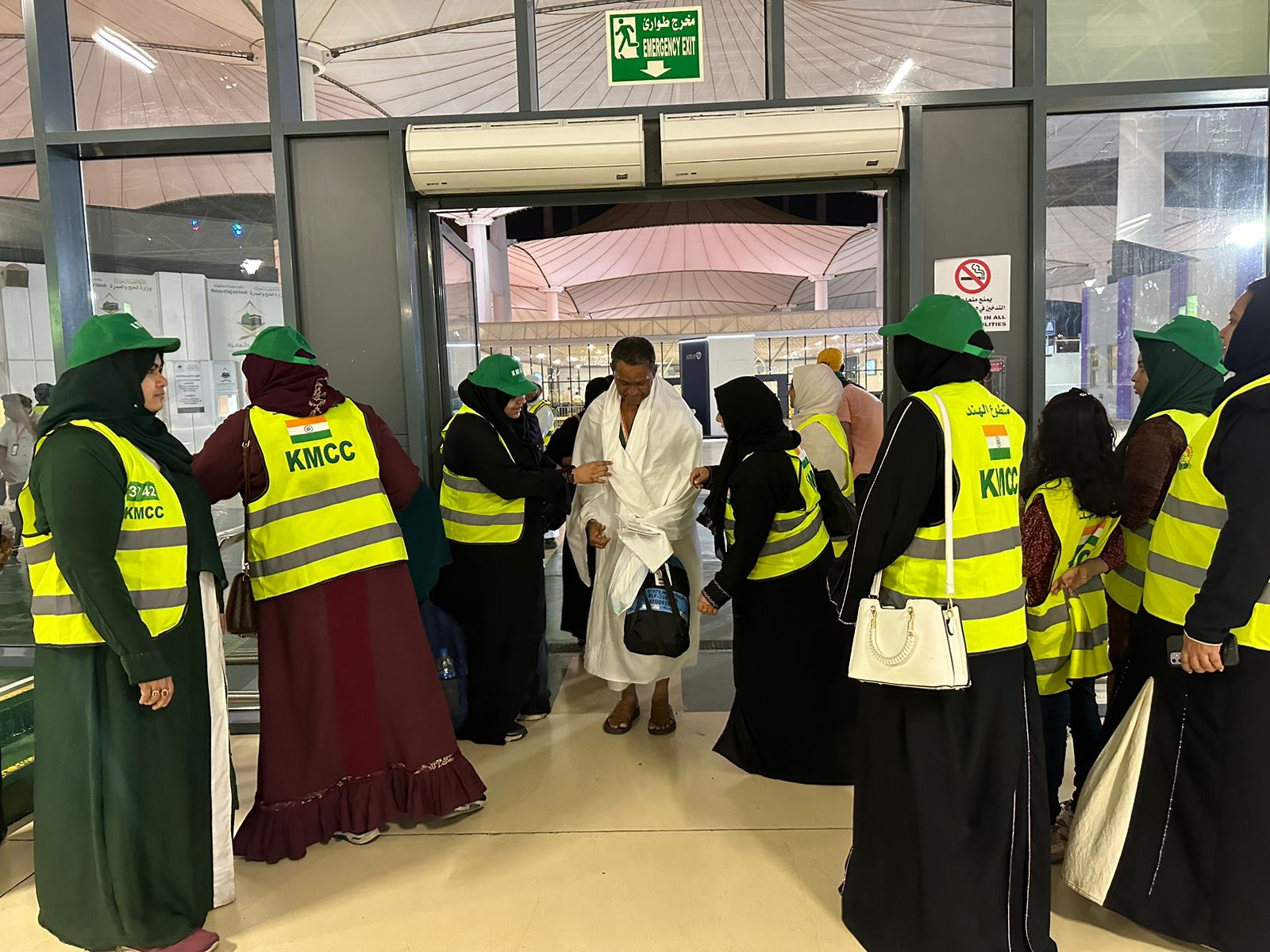 ജിദ്ദ: കേരളത്തിൽ നിന്നുള്ള ഈ വർഷത്തെ അവസാനത്തെ ഹജ്ജ് ഫ്ലൈറ്റിന് ആവേശകരമായ സ്വീകരണം ഒരുക്കി ജിദ്ദ കെഎംസിസി സെൻട്രൽ കമ്മിറ്റി. കണ്ണൂരിൽ നിന്നും സഊദി എയർലൈൻസ് എസ് വി 5619 വിമാനം വഴി 322 പരിശുദ്ധ ഹജ്ജ് തീർത്ഥാടകർക്ക്‌ കെഎംസിസി നേതാക്കന്മാരും വളണ്ടിയർമാരും വനിതാ വളണ്ടിയർമാർ അടക്കം ആവേശകരമായ സ്വീകരണമാണ് നൽകിയത്.