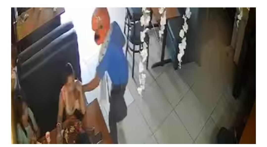 വീഡിയോയിൽ ഒരാൾ ഹെൽമറ്റും ധരിച്ച് ഒരു ടേബിളിനടുത്ത് നിൽക്കുന്നത് കാണാം. കൗണ്ടറിനടുത്ത് ഭക്ഷണം വരാൻ കാത്ത് നിൽക്കുന്ന ഒരു ഫുഡ് ഡെലിവറി ഏജന്റിനെ പോലെയാണ് ഇയാൾ പെരുമാറുന്നത്. തൊട്ടടുത്ത ടേബിളിൽ കുറച്ച് യുവതികൾ ഭക്ഷണം കഴിക്കുന്നതും കാണാം.