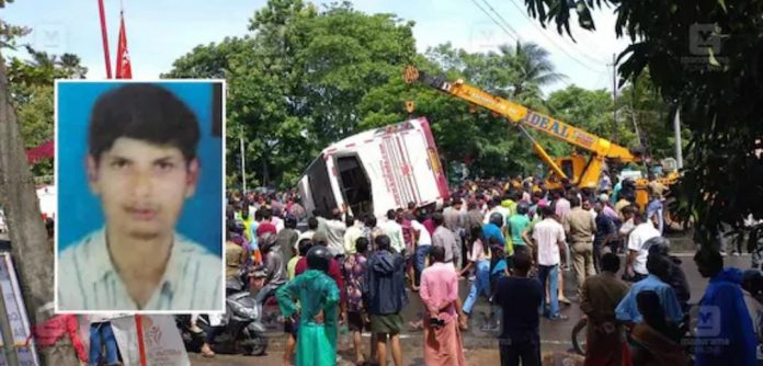 ‘‘സിഗ്നലിൽ ഞാൻ കാർ നിര്ത്തിയിട്ടിരിക്കുകയായിരുന്നു. സിഗ്നൽ മാറിയതും അൽപം മുന്നോട്ട് നീക്കി. വലിയ ശബ്ദം കേട്ടാണ് തിരിഞ്ഞു നോക്കിയത്. സാമാന്യം വേഗതയിലെത്തിയ ബസ് പെട്ടെന്ന് ബ്രേക്കിട്ട് നിര്ത്താൻ ശ്രമിച്ചു. ബസിന്റെ പുറകുവശം തിരിഞ്ഞ് സൈഡിൽ നിർത്തിയിട്ട ബൈക്കിൽ ചെന്നിടിച്ച് അതിനു മുകളിലേക്ക് മറിഞ്ഞു. ’’ –അപകടത്തിന്റെ ദൃക്സാക്ഷി പറഞ്ഞു.