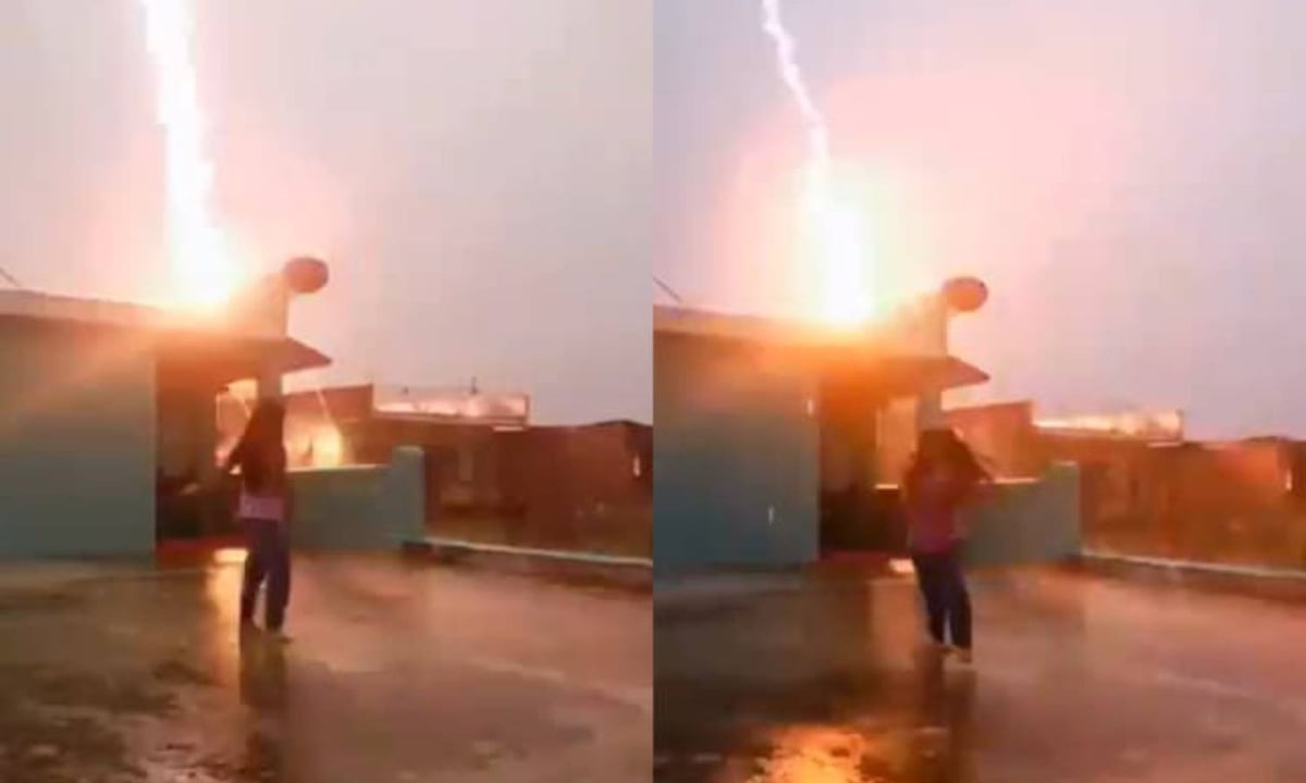 ബീഹാറില്‍ നിന്നുമുള്ളൊരു വീഡിയോ ആണ് സോഷ്യല്‍ മീഡിയയില്‍ വൈറലാകുന്നത്. വീടിന്റെ ടെറസിന് മുകളില്‍ നിന്ന് റീല്‍സ് ചിത്രീകരണത്തിനിടെ ഒരു പെണ്‍കുട്ടിയുടെ സമീപം അതിശക്തമായ മിന്നല്‍ വന്ന് പതിക്കുന്നതാണ് വീഡിയോയില്‍ കാണാന്‍ സാധിക്കുന്നത്. നിതീഷ് എന്ന വ്യക്തിയാണ് എക്‌സില്‍ ഈ വീഡിയോ പങ്കുവച്ചത്.