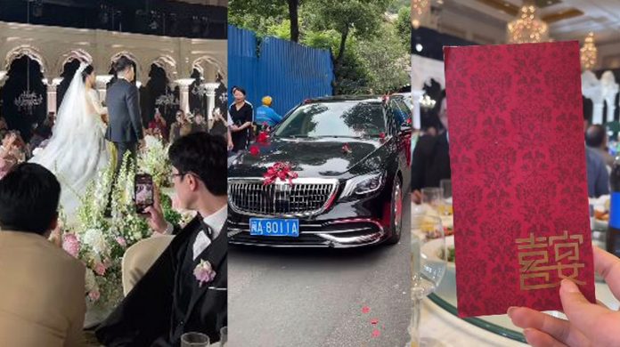 വരനും വധുവിനും അതിഥികള് പണം, ചുവപ്പ് നിറമുള്ള കവറിലാക്കി നല്കുന്നത് ചൈനീസ് വിവാഹങ്ങളിലെ പരമ്പരാഗതമായ ചടങ്ങാണ്. എന്നാല് വധൂവരന്മാര് അതിഥികളില് നിന്ന് പണം സ്വീകരിച്ചില്ല. പകരം പണം നിറച്ച ചുവപ്പ് കവര് ഇവര് അതിഥികള്ക്ക് സമ്മാനിച്ചു. ഓരോ കവറിലും ഏകദേശം 66,700 രൂപയാണുണ്ടായിരുന്നത്. ഓരോ ടേബിളിലും വീണ്ടും കവറുകള് വെച്ചിരുന്നു. കൂടുതല് പണം ആവശ്യമുള്ളവര്ക്ക് ആ കവറുകള് എടുക്കാനുള്ള സൗകര്യവുമുണ്ടായിരുന്നു.
