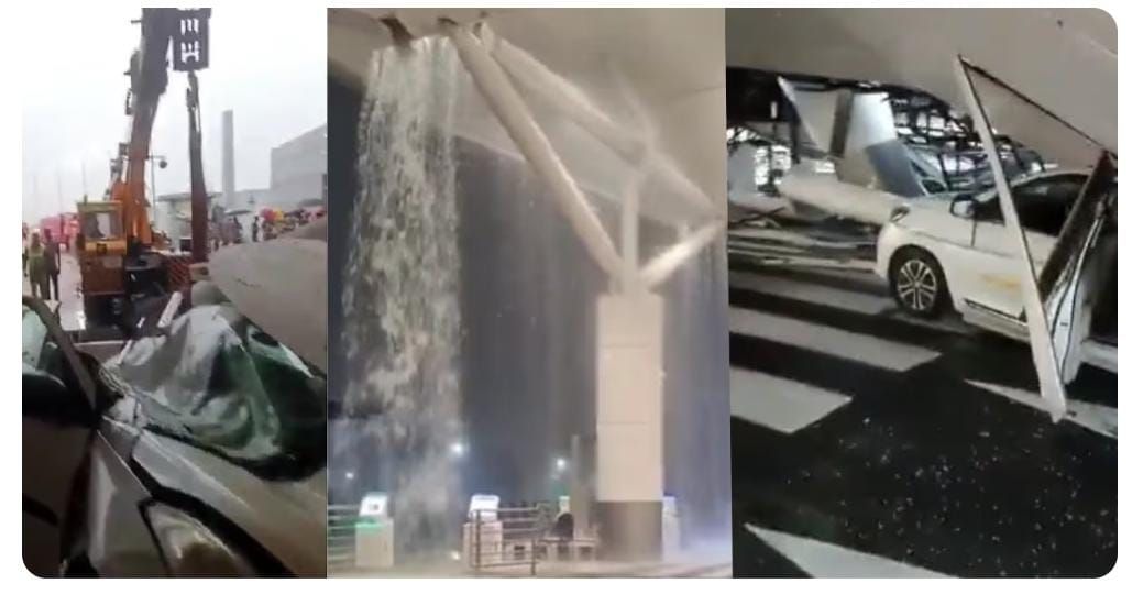 വെള്ളിയാഴ്ച രാവിലെ അഞ്ചരയോടെയാണു സംഭവം. മേൽക്കൂരയിലെ ഷീറ്റുകളും അത് താങ്ങിനിർത്തിയിരുന്ന തൂണുകളുമാണ് നിലംപൊത്തിയത്. ഒട്ടേറെ കാറുകൾക്ക് കേടുപാടുകളുണ്ടായി. സ്ഥിതിഗതികൾ നേരിട്ടു വിലയിരുത്തുന്നതായി വ്യോമയാന മന്ത്രി റാം മോഹൻ നായിഡു കിൻജാരാപു പറഞ്ഞു.സുരക്ഷയുടെ ഭാഗമായി ചെക്ക് ഇൻ കൗണ്ടറുകളും അടച്ചതായി ഡൽഹി വിമാനത്താവള വക്താവ് അറിയിച്ചു. ആഭ്യന്തര സർവീസുകളാണ് ടെർമിനൽ ഒന്നിൽ കൈകാര്യം ചെയ്യുന്നത്. കഴിഞ്ഞദിവസം മുതൽ ഡൽഹിയിൽ കനത്ത മഴയാണ് ലഭിക്കുന്നത്. 24 മണിക്കൂറിനിടെ 228.1 മില്ലിമീറ്റർ മഴ പെയ്തു. ശക്തമായ മഴയില് നോയിഡ, ആർ.കെ.പുരം, മോത്തിനഗര് തുടങ്ങിയ വിവിധ പ്രദേശങ്ങളില് വെള്ളം കയറി. നഗരത്തിൽ ഗതാഗതക്കുരുക്ക് രൂക്ഷമാണ്.