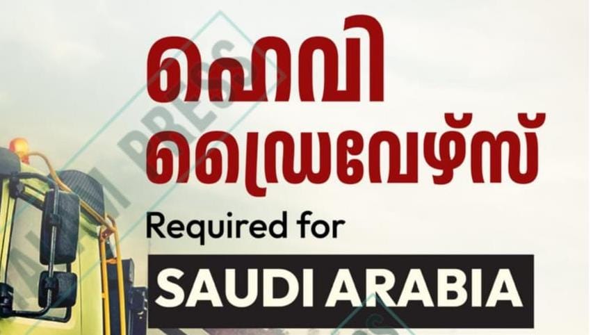 സഊദിയിലേക്ക് ഹെവി ഡ്രൈവർമാരെ ഉടൻ ആവശ്യമുണ്ട്