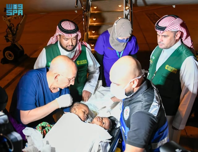 നിന്നുള്ള സയാമീസ് ഇരട്ടകളെ റിയാദിലെത്തിച്ചു. സൽമാൻ രാജാവിൻ്റെയും കിരീടാവകാശി മുഹമ്മദ് ബിൻ സൽമാൻ രാജകുമാരൻ്റെയും നിർദ്ദേശങ്ങൾ പാലിച്ച് പ്രതിരോധ മന്ത്രാലയത്തിൻ്റെ മേൽനോട്ടത്തിലാണ് അവരുടെ അമ്മയോടൊപ്പം കുട്ടികളെ എത്തിച്ചത്.