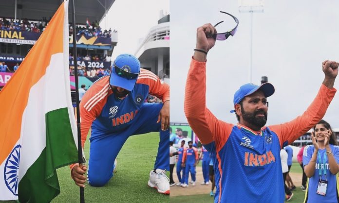 ഡല്‍ഹി: ട്വന്റി 20 ലോകകപ്പ് നേട്ടത്തില്‍ ഇന്ത്യന്‍ ക്യാപ്റ്റന്‍ രോഹിത് ശര്‍മ്മ ഏറെ ആവേശഭരിതനായിരുന്നു. ബാര്‍ബഡോസിലെ പിച്ചില്‍ താരം ഇന്ത്യയുടെ ദേശീയ പതാക കുത്തിവെയ്ക്കുകയും ചെയ്തു. പിന്നാലെ രോഹിത് ശര്‍മ്മയുടെ സമൂഹമാധ്യമങ്ങളില്‍ ഈ ചിത്രം പ്രൊഫൈല്‍ ഫോട്ടോയാക്കി. ഇതിനെതിരെയാണ് ഒരുകൂട്ടം ആളുകള്‍ രംഗത്തെത്തിയിരിക്കുന്നത്.