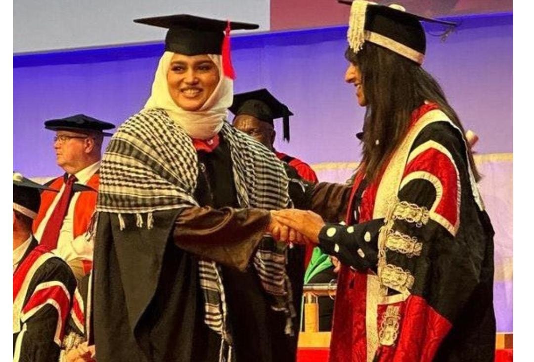 ബിരുദദാന ചടങ്ങില്‍ ഫലസ്തീന് ഐക്യദാര്‍ഢ്യവുമായെത്തിയ സഫ ശാക്കിര്‍ ശ്രദ്ധേയയായി