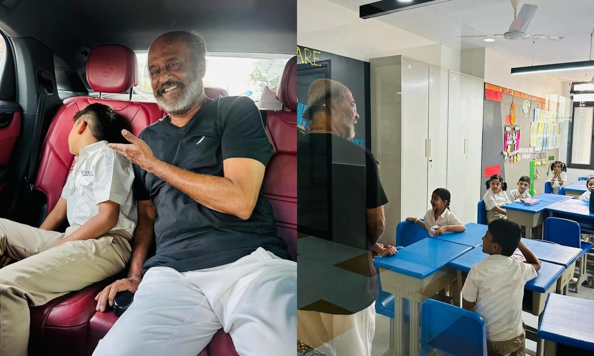 സ്കൂളിൽ പോകാൻ മടിച്ചു നിന്ന കൊച്ചുമകനെ ഒപ്പമിരുത്തി സ്കൂളിലെത്തിച്ച് സൂപ്പർ സ്റ്റാർ ‘താത്ത’. രജനികാന്തിനൊപ്പമുള്ള മകന്റെ ചിത്രം പങ്കുവെച്ചിരിക്കുകയാണ് താരത്തിന്റെ രണ്ടാമത്തെ മകളും സംവിധായികയുമായ സൗന്ദര്യ രജനികാന്ത്. മകനൊപ്പം രജനി കാറിൽ ഇരിക്കുന്നതിന്റെയും ക്ലാസ് മുറിയിലേക്ക് മകനുമായി വരുന്നതിന്റെയും ചിത്രങ്ങളാണ് സൗന്ദര്യ സോഷ്യൽ മീഡിയയിൽ കുറിപ്പിനൊപ്പം പങ്കുവെച്ചത്.