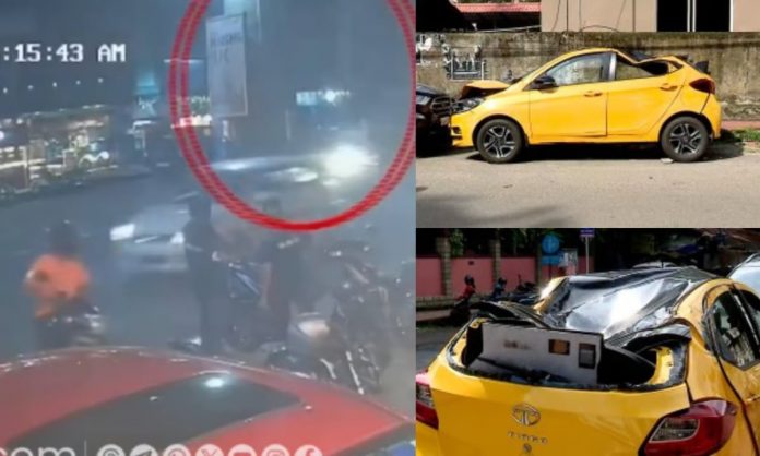 നിയന്ത്രണം വിട്ട കാര് തലകീഴായി മറിയുന്ന സിസിടിവി ദൃശ്യങ്ങൾ പുറത്ത് വന്നിട്ടുണ്ട്. തലകീഴായി മറിഞ്ഞ കാർ മുന്നിലുണ്ടായിരുന്ന കാറിലിടിക്കുകയും ഈ കാര് റോഡരികില് നിര്ത്തിയിട്ടിരുന്ന ഫുഡ് ഡെലിവറി ബോയുടെ ബൈക്കിലിടിക്കുകയും ചെയ്തു. തലകീഴായി മറിഞ്ഞ, ചലച്ചിത്ര പ്രവർത്തകരുടെ കാര് മുന്നോട്ട് നീങ്ങി ബൈക്കുകളിൽ ഇടിച്ചാണ് നിന്നത്.