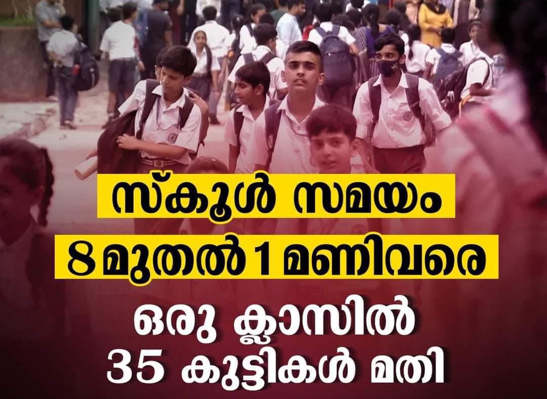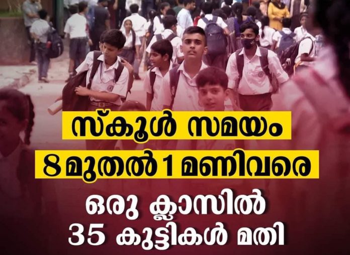 സ്കൂൾ സമയം എട്ടുമുതൽ ഒരുമണിവരെയാക്കാൻ ശുപാർശ