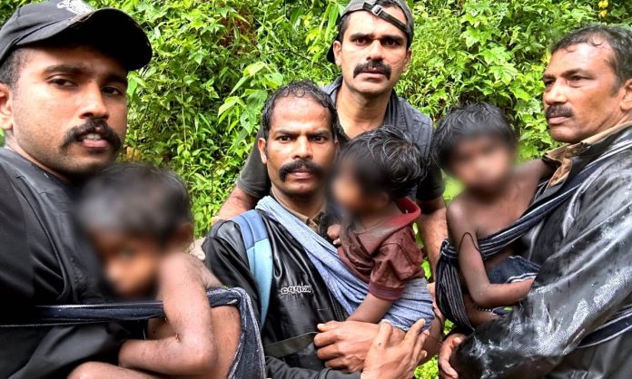 കൽപ്പറ്റ: തുടർച്ചയായ എട്ട് മണിക്കൂർ നീണ്ട കഠിന പ്രയത്നത്തിനൊടുവിൽ വനം വകുപ്പ് ഉദ്യോഗസ്ഥർ രക്ഷിച്ചത് ആറു ജീവനുകൾ. സൂചിപ്പാറ വെള്ളച്ചാട്ടത്തിന് അടിവാരത്തുള്ള ഏറാക്കുണ്ട് സങ്കേതത്തിലെ കൃഷ്ണൻ, ഭാര്യ ശാന്ത, ഇവരുടെ നാലുമക്കൾ അടങ്ങിയ കുടുംബത്തെയാണ് വനം വകുപ്പിലെ നാല് ഉദ്യോഗസ്ഥർ രക്ഷിച്ചത്.