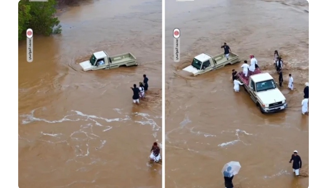 ഒഴുക്കില്‍പെട്ട കാറില്‍ കുടുങ്ങിയ യുവാവിനെ രക്ഷിച്ചു. ജിസാന്‍ പ്രവിശ്യക്ക് വടക്ക് അല്‍ദര്‍ബിലെ വാദി അല്‍ഖരനില്‍ മലവെള്ളപ്പാച്ചിലില്‍ പെട്ട കാറില്‍ കുടുങ്ങിയ സൗദി യുവാവിനെ ഒരു കൂട്ടം സ്വദേശി യുവാക്കള്‍ ചേര്‍ന്ന് രക്ഷപ്പെടുത്തി. അല്‍ദര്‍ബ്, അല്‍ഫതീഹ റോഡിലാണ് സംഭവം.