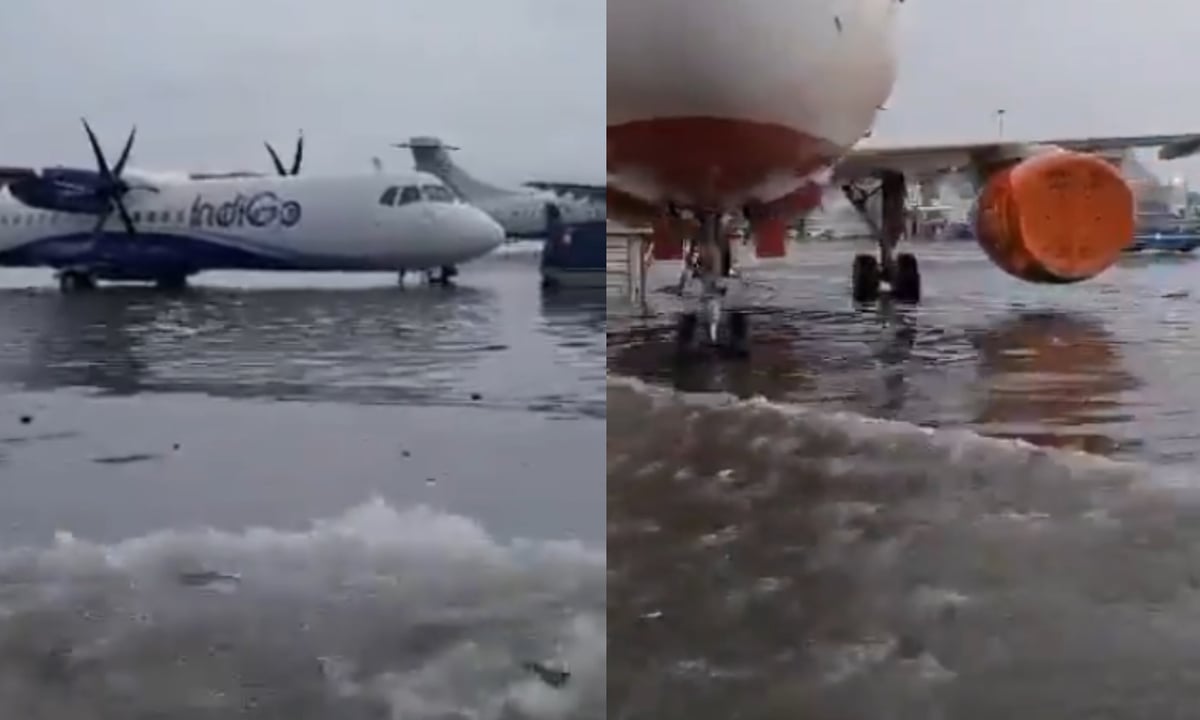 കൊല്ക്കത്ത വിമാനത്താവളത്തില് നിര്ത്തിയിട്ടിരിക്കുന്ന വിമാനങ്ങളുടെ ടയറുകള് പാതിയോളം വെള്ളത്തില് മുങ്ങിയ നിലയിലാണുള്ളത്. ഇതിൻ്റെ ദൃശ്യങ്ങള് സാമൂഹിക മാധ്യമങ്ങളില് പ്രചരിക്കുകയാണ്.