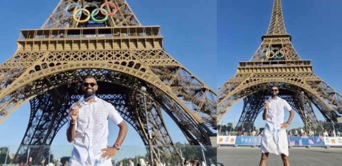 പാരീസ് ഒളിമ്പിക്സിലെ വെങ്കല നേട്ടത്തിന് പിന്നാലെ ഇന്ത്യയുടെ ഹോക്കി ഗോള്ക്കീപ്പര് പി.ആര്. ശ്രീജേഷ് സാമൂഹിക മാധ്യമങ്ങളില് പങ്കുവെച്ച ഒരു ചിത്രമാണ് ഇപ്പോള് തരംഗമായിരിക്കുന്നത്. പാരീസിലെ ഈഫല് ടവറിന് മുന്നില് മുണ്ട് മടക്കിക്കുത്തി, കഴുത്തില് വെങ്കല മെഡല് അണിഞ്ഞ് തനി മലയാളിയായാണ് ശ്രീജേഷിന്റെ നില്പ്പ്.