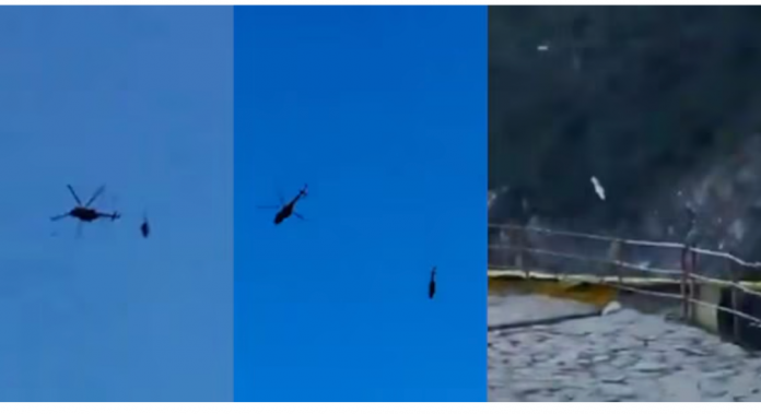 ന്യൂഡൽഹി: ഉത്തരാഖണ്ഡിലെ കേദാർനാഥിൽ നിന്ന് ഗൗച്ചറിലേക്ക് എംഐ 17 ചോപ്പർ എയർലിഫ്റ്റ് ചെയ്തുകൊണ്ടുവരികയായിരുന്ന ഹെലികോപ്റ്റർ കയർപൊട്ടി താഴേക്കു പതിച്ചു. ലിഞ്ചോളിയിലെ മന്ദാകിനി നദിയിലേക്കാണ് ഹെലികോപ്റ്റർ പതിച്ചത്. സ്വകാര്യ കമ്പനിയുടെ ഹെലികോപ്റ്ററാണ് അപകടത്തിൽ പെട്ടത്. ആർക്കും പരുക്കില്ല. അപകടത്തിന്റെ ദൃശ്യങ്ങൾ ക്യാമറയിൽ പതിഞ്ഞിട്ടുണ്ട്.