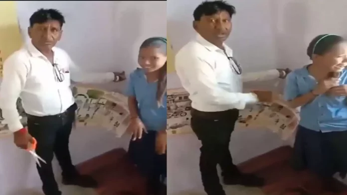 കത്രിക കൊണ്ട് അധ്യാപകൻ മുടിമുറിക്കാൻ ശ്രമിക്കുമ്പോൾ വിദ്യാർത്ഥിനി പേടിച്ച് കരയുകയാണ്. ശരിയായി പഠിക്കാത്തതിൻ്റെ പേരിൽ ശിക്ഷയായിട്ടാണ് വിദ്യാർഥിനിയുടെ മുടിമുറിച്ച് മാറ്റിയതെന്നാണ് വീർ സിങ് നൽകിയ വിശദീകരണം. സംഭവത്തിനിടെ പെൺകുട്ടി കരയുന്നുണ്ടെങ്കിലും അധ്യാപകൻ ശ്രദ്ധിച്ചില്ല.