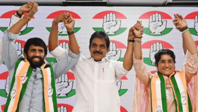 കോണ്ഗ്രസ് അധ്യക്ഷന് മല്ലികാര്ജുന് ഖര്ഗെയെ സന്ദര്ശിച്ചതിന് ശേഷം ഇന്ന് ഉച്ചയ്ക്കായിരുന്നു വിനേഷ് ഫോഗട്ടും ബജ്റംഗ് പുനിയയും പാര്ട്ടിയില് ചേര്ന്നത്. ഡല്ഹിയിലെ കോണ്ഗ്രസിന്റെ ഹെഡ്ക്വാര്ട്ടേര്സില് വെച്ചായിരുന്നു പാര്ട്ടിയില് ചേര്ന്നത്. കോണ്ഗ്രസ് അധ്യക്ഷന് മല്ലികാര്ജുന് ഖര്ഗെയെ അദ്ദേഹത്തിന്റെ വസതിയില് സന്ദര്ശിച്ചതിന് പിന്നാലെയാണ് ഇരുവരും ഹെഡ്ക്വാര്ട്ടേഴ്സില് ചെന്നത്. ബുധനാഴ്ച രണ്ട് പേരും ലോക്സഭാ പ്രതിപക്ഷ നേതാവ് രാഹുല് ഗാന്ധിയെ സന്ദര്ശിച്ചിരുന്നു.