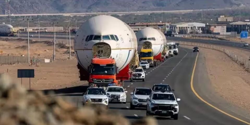 റോഡിലൂടെ എത്തിയ സഊദിയ വിമാനങ്ങൾ ലാൻഡ് ചെയ്തു, റോഡിലൂടെ താണ്ടിയത് 1000 കി.മീ, 11 ദിവസമെടുത്ത് 3 വിമാനങ്ങൾ റിയാദിലെത്തി, റോഡ് എങ്ങും രാജകീയ സ്വീകരണം