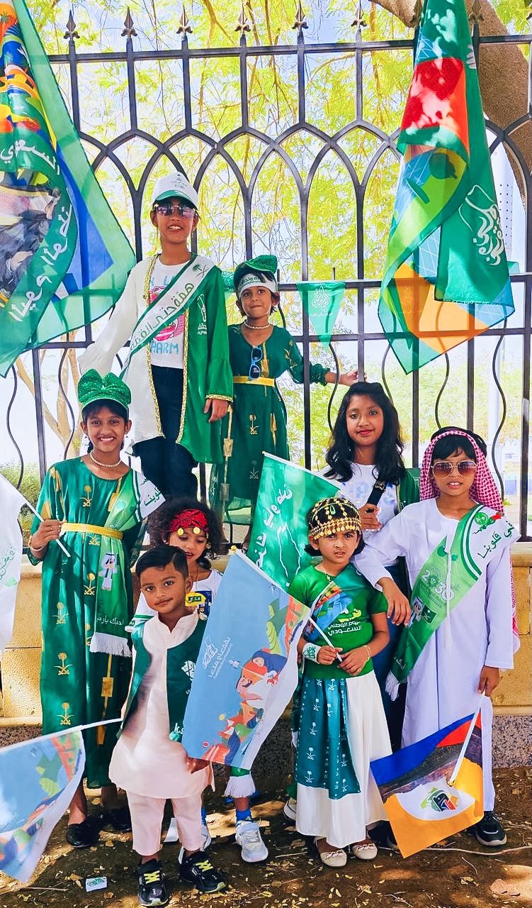 കുട്ടികളുടെ നേതൃത്വത്തിൽ ദേശിയ ഗാനാലാപനം, കേക്ക് മുറിക്കൽ, മധുരം വിതരണം, ഘോഷയാത്ര  വാഹനറാലി എന്നിവയുമുണ്ടായി. രാജ്യത്തിന്റെ വളര്‍ച്ചയും പുരോഗതിയും അടയാളപ്പെടുത്തുന്ന ആഘോഷ പരിപാടികളാണ് ദേശീയ ദിനത്തിൻന്റെ  ഭാഗമായി സഊദിയിലെമ്പാടും സംഘടിപ്പിച്ചിട്ടുള്ളത്. സ്വദേശികള്‍ക്കൊപ്പം വിവിധ രാജ്യക്കാരായ വിദേശികളും ആഘോഷ പരിപാടികളുടെ ഭാഗമായി. 1932ൽ മേഖലയിലെ വിവിധ നാട്ടുരാജ്യങ്ങളെ ചേര്‍ത്ത് ആധുനിക സഊദി അറേബ്യയായി ഏകീകരിച്ചതിൻ്റെ ഓര്‍മ പുതുക്കലാണ് ദേശീയ ദിനം. 2005 മുതലാണ് സഊദി അറേബ്യ ദേശീയ ദിനം വിപുലമായി ആഘോഷിക്കാൻ തുടങ്ങിയത്.