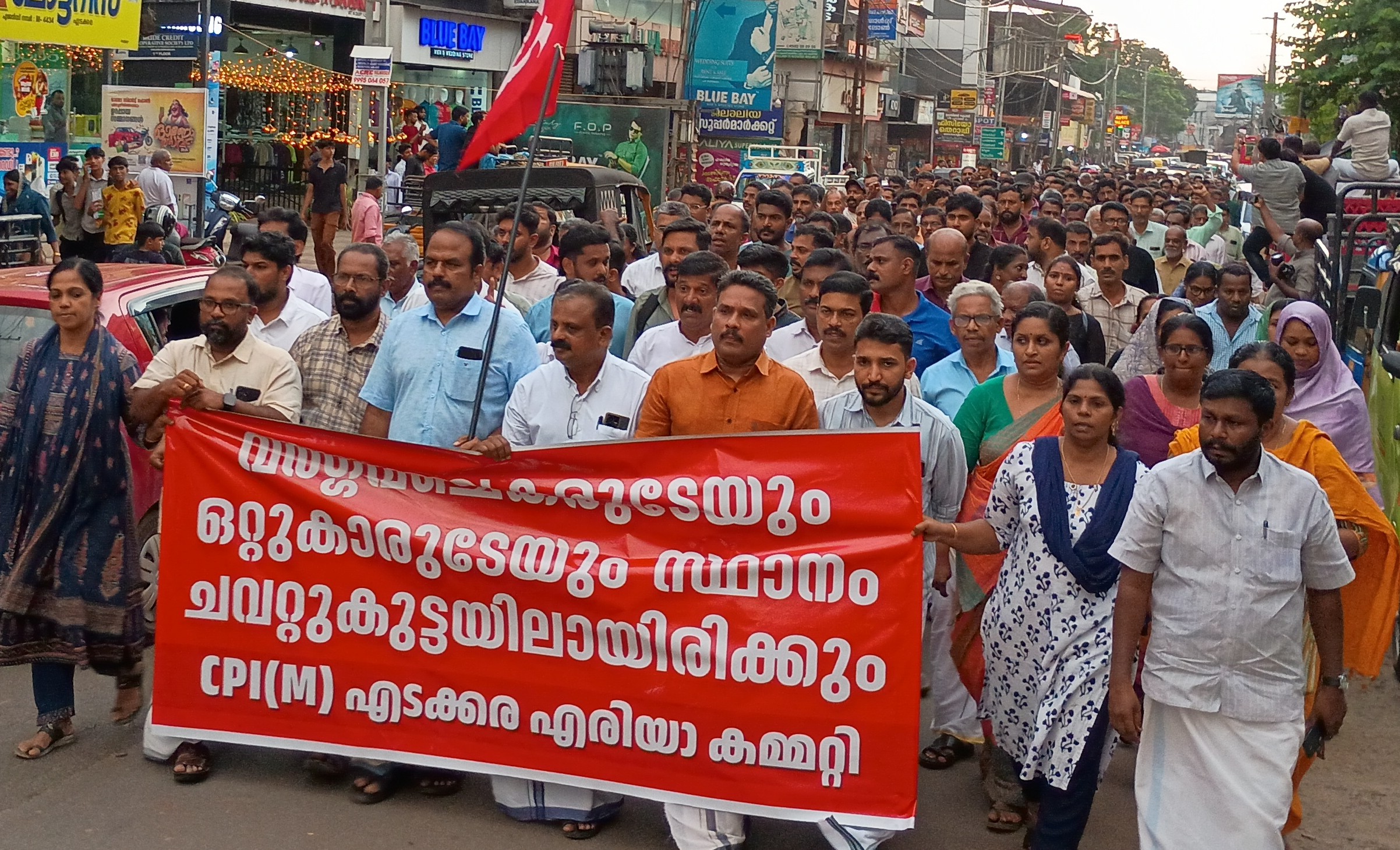 സി.പി.എം ഏരിയ കമ്മിറ്റിയുടെ നേതൃത്വത്തിലാണ് നിലമ്പൂർ ടൗണിലും എടക്കരയിലും പ്രതിഷേധ പ്രകടനം നടക്കുന്നത്. ചെങ്കൊടി തൊട്ടു കളിക്കണ്ട എന്ന ബാനറും അന്‍വറിന്‍റെ കോലവുമായാണ് പ്രകടനം നഗരത്തിലൂടെ നീങ്ങുന്നത്. ‘ഗോവിന്ദൻ മാഷ് കൈ ഞൊടിച്ചാൽ വെട്ടിയരിഞ്ഞ് പുഴയിൽ തള്ളും’, ‘മര്യാദക്ക് നടന്നില്ലെങ്കിൽ കൈയും കാലും വെട്ടി അരിയും’… ഉൾപ്പെടെ പ്രകോപന മുദ്രാവാക്യങ്ങളും പ്രവർത്തകർ മുഴക്കുന്നുണ്ട്.