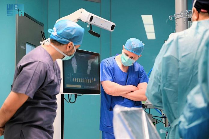 മദീന: കിങ് സൽമാൻ മെഡിക്കൽ സിറ്റിയിൽ ആദ്യത്തെ റോബോട്ടിക് മുട്ട് മാറ്റിസ്ഥാപിക്കൽ ശസ്ത്രക്രിയ വിജയകരം. മദീന ഹെൽത്ത് ക്ലസ്റ്ററിൻ്റെ ഭാഗമായ കിങ് സൽമാൻ ബിൻ അബ്ദുൽ അസീസ് മെഡിക്കൽ സിറ്റിയിലെ സ്പെഷ്യലൈസ്ഡ് ഓർത്തോപീഡിക്, ജോയിൻ്റ് റീപ്ലേസ്മെൻ്റ് സർജിക്കൽ ടീംമാണ് എഴുപതുകളിലുള്ള ഒരു സ്ത്രീക്ക് റോബോട്ടിക് സഹായത്തോടെ കാൽമുട്ട് മാറ്റിവയ്ക്കൽ ശസ്ത്രക്രിയ നടത്തിയത്.