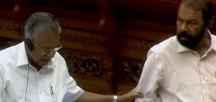 ഇതിനിടെ തന്റെ സീറ്റിനരികിലൂടെ പ്രതിപക്ഷ നിരയിലേക്ക് പോകാൻ ശ്രമിച്ച ശിവൻകുട്ടിയെ മുഖ്യമന്ത്രി ശ്രദ്ധിച്ചു, കയ്യിൽപിടിച്ച് പിന്നോട്ടു വലിച്ചു. തുടർന്ന് ശിവൻകുട്ടി സീറ്റിലേക്ക് മടങ്ങി. ഈ ദൃശ്യങ്ങളിപ്പോൾ സാമൂഹ്യമാധ്യമങ്ങളിൽ വൈറലാണ്.