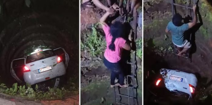 തുടർന്ന് കിണറിന്റെ സംരക്ഷണ ഭിത്തി തകർത്ത് ഉള്ളിലേക്ക് വീണു. കിണറിൽ വെള്ളം കുറവായതിനാലാണ് വൻ ദുരന്തം ഒഴിവായത്. അപകടം നടന്നതിനു പിന്നാലെ ദമ്പതികൾക്ക് കാറിന്റെ ഡോർ തുറക്കാൻ സാധിച്ചതിനാൽ രക്ഷാപ്രവർത്തനം എളുപ്പമായി. ഇരുവരുടെയും പരുക്ക് ഗുരുതമല്ല. കാർ പിന്നീട് ക്രൈയിൻ ഉപയോഗിച്ച് പുറത്തെടുത്തു.