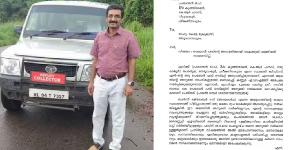 ചേരന്മൂല നിടുവാലൂരിൽ പെട്രോൾ പമ്പ് അനുവദിക്കാനാണ് നവീൻ ബാബുവിന് പണം നൽകിയത്. പെട്രോൾ പമ്പിന്റെ അനുമതിക്ക് വേണ്ടി നവീൻ ബാബുവിന് അപേക്ഷ നൽകിയെങ്കിലും ആറ് മാസത്തോളം ഫയൽ പഠിക്കട്ടെ എന്ന് പറഞ്ഞ് വൈകിപ്പിച്ചു. പിന്നീട് ഒക്ടോബർ ആറിന് അദ്ദേഹത്തിന്റെ താമസസ്ഥലത്തേക്ക് വിളിച്ച് വരുത്തി ഒരു ലക്ഷം രൂപ ആവശ്യപ്പെട്ടു. ബാങ്ക് ട്രാൻസ്ഫർ ചെയ്യാം എന്ന് പറഞ്ഞപ്പോൾ അത് അദ്ദേഹം വിലക്കി. ഗൂഗിൾ പേ വഴി അയക്കാം എന്ന് പറഞ്ഞപ്പോഴും സമ്മതിച്ചില്ല.