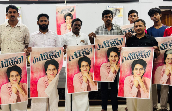 പ്രിയങ്ക ഗാന്ധിക്ക് വേണ്ടി മണ്ഡലത്തിൽ പോസ്റ്റർ പതിപ്പിച്ചപ്പോൾ