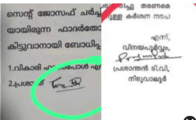 കണ്ണൂർ: എഡിഎം ജീവനൊടുക്കിയ സംഭവത്തിൽ കൈക്കൂലി പരാതി വ്യാജമെന്ന് സംശയം. പെട്രോൾ പമ്പിനുള്ള പാട്ടക്കരാറിലും കൈക്കൂലി സംബന്ധിച്ച പരാതിയിലും പ്രശാന്തൻ്റെ ഒപ്പിൽ വെവ്വേറെയായതാണ് സംശയം ബലപ്പെടുത്തിയത്.