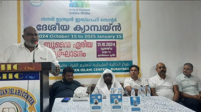 ബുറൈദ: സഊദി ഇന്ത്യൻ ഇസ്ലാഹി സെന്റർ ദേശീയ തലത്തിൽ സാമൂഹ്യ സുരക്ഷക്ക് ധാർമ്മിക ജീവിതം എന്ന പ്രമേയത്തിൽ സംഘടിപ്പിക്കുന്ന ത്രൈമാസ ക്യാമ്പയിന്റെ ബുറൈദ ഏരിയ ദ്ഘാടനം അൻവർ പി എച്ച് നൂറനാട് നിർവഹിച്ചു. സുരക്ഷിത സമൂഹത്തിന് ധാർമികത അനിവാര്യമാണെന്നും ധാർമിക മൂല്യങ്ങളെ അവഗണിക്കുന്നത് മനുഷ്യസമൂഹത്തിന്റെ സമാധാന ജീവിതത്തിന് വിഘാതം സൃഷ്ടിക്കുമെന്നും അദ്ദഹം അഭിപ്രായപ്പെട്ടു. ബുറൈദ ഇസ്തിറാഹ മുനീറിയൽ നടന്ന പരിപാടിയിൽ പ്രസിഡണ്ട് ഹസ്ക്കർ ഒതായി അദ്ധ്യക്ഷത വഹിച്ചു.