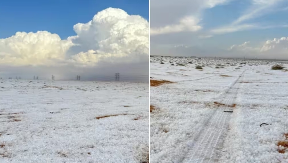 റിയാദ്: മഞ്ഞണിഞ്ഞ് സഊദിയുടെ വടക്കൻ മേഖലയായ അൽ ജൗഫ്. വെള്ളിയാഴ്ച മുതൽ അൽ ജൗഫ് പ്രവിശ്യയുടെ വടക്കൻ ഭാഗമാകെ വെള്ളപുതച്ചുകിടക്കുകയാണ്. മണലും കുറ്റിച്ചെടികളും പർവതങ്ങളും പാതകളും മഞ്ഞിന്‍റെ കമ്പളം പുതച്ചു. പ്രവിശ്യ ആസ്ഥാനമായ സകാക്ക നഗരത്തിന്‍റെ വടക്കുഭാഗത്തും ദൗമത് അൽ ജൻഡാൽ ഗവർണറേറ്റ് പരിധിയിലും ആലിപ്പഴ വർഷവും തുടർച്ചയായ കനത്ത മഴയും പെയ്തതിനെ തുടർന്നാണീ പ്രതിഭാസം.