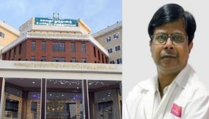 അമ്മയുടെ രോഗം ചികിൽസിച്ച് ഭേദമാക്കാത്ത ഡോക്ടറോട് മകൻ്റെ പ്രതികാരം. ആശുപത്രിയിൽ ഡ്യൂട്ടി ചെയ്യുന്നതിനിടെയായിരുന്നു ഡോക്ടർക്ക് നേരെ അപ്രതീക്ഷിത ആക്രമണം ഉണ്ടായത്. ചെന്നൈ ഗിണ്ടിയിലെ കലൈഞ്ജർ സ്മാരക ആശുപത്രിയിൽ ബുധനാഴ്ച രാവിലെയാണ് സംഭവം. ആശുപത്രിയിലെ ഓങ്കോളജി വിഭാഗത്തിൽ ഡ്യൂട്ടിയിലുണ്ടായിരുന്ന ഡോക്ടർ ബാലാജിയെ വിഘ്നേഷ് എന്ന 25 കാരനാണ് ആക്രമിച്ചത്.