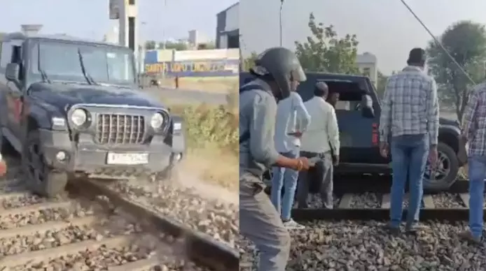 റീൽസെടുത്ത് വൈറലാകാൻ റെയിൽവേ ട്രാക്കിൽ ഥാർ കയറ്റി; ലോക്കോപൈലറ്റ് കൃത്യസമയത്ത് ട്രെയിന്‍ നിര്‍ത്തിയതിനാല്‍ ഒഴിവായത് വൻ അപകടം