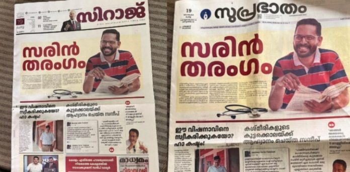 ‘ഈ വിഷപ്പാമ്പിനെ സ്വീകരിക്കുകയോ കഷ്ടം’ എന്ന തലക്കെട്ടിൽ സന്ദീപ് വാര്യരുടെ ഫോട്ടോ വെച്ച് സമസ്ത ഇ കെ വിഭാഗത്തിന്റെ സുപ്രഭാതത്തിലെയും എ പി വിഭാഗത്തിന്റെ സിറാജിലെയും പാലക്കാട്ടെ എഡിഷനിലാണ് പരസ്യം വന്നത്.സന്ദീപ് വാര്യരുടെ പഴയ മുസ്ലിം വിരുദ്ധ പരാമർശങ്ങളാണ് സിറാജിൻ്റെയും സുപ്രഭാതത്തിൻ്റെയും ഒന്നാം പേജിൽ പരസ്യമായത്. എൽഡിഎഫ് തിരഞ്ഞെടുപ്പ് കമ്മിറ്റിയുടെ പേരിൽ വന്ന പരസ്യത്തിനെതിരെ രാഹുൽ മാങ്കൂട്ടത്തിൽ രംഗത്തെത്തി.