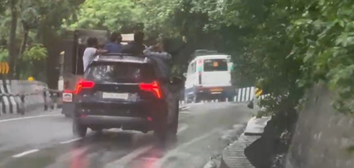 ഹൈദരാബാദ്: തിരുമല ഘാട്ട് റോഡില് സാഹസിക വാഹനയാത്ര നടത്തിയ യുവാക്കള് അറസ്റ്റില്. വാതിലുകളും സണ് റൂഫും തുറന്നിട്ട് അമിതവേഗതയില് കാര് ഓടിച്ച ആറുപേരാണ് തിരുമല ടൗണ് പൊലീസിന്റെ പിടിയിലായത്. വാഹനത്തില് അപകടകരമാംവിധം തൂങ്ങിനിന്ന് സെല്ഫിയെടുക്കുകയും പിറകെ വന്ന യാത്രക്കാര്ക്ക് മാര്ഗ തടസം സൃഷ്ടിക്കുകയും ചെയ്യുന്ന ദൃശ്യങ്ങളുടെ അടിസ്ഥാനത്തിലാണ് നടപടി.