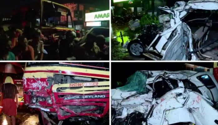 ഇന്നലെ രാത്രിയായിരുന്നു നാടിനെയാകെ നൊമ്പരത്തിലാഴ്ത്തിയ ദാരുണമായ വാഹനാപകടം ഉണ്ടായത്. പാലക്കാട് സ്വദേശി ശ്രീദേവ് വത്സൻ, മലപ്പുറം കോട്ടക്കൽ സ്വദേശി ദേവനന്ദൻ, കണ്ണൂർ സ്വദേശി മുഹമ്മദ് അബ്ദുൽ ജബ്ബാർ, ലക്ഷദ്വീപ് സ്വദേശി മുഹമ്മദ് ഇബ്രാഹിം, കോട്ടയം സ്വദേശി ആയുഷ് ഷാജി എന്നിവരാണ് അപകടത്തില്‍ മരിച്ചത്. രണ്ട് മാസം മുമ്പാണ് അഞ്ച് പേരും ആലപ്പുഴ മെഡിക്കൽ കോളേജിൽ എംബിബിഎസിന് ചേര്‍ന്നത്. കാറിൽ 11 പേരുണ്ടായിരുന്നു ഉണ്ടായിരുന്നത്. ആലപ്പുഴയിലേക്ക് സിനിമയ്ക്ക് പോകുകയായിരുന്നു യുവാക്കള്‍. ഇവർ സഞ്ചരിച്ചിരുന്ന കാർ നിയന്ത്രണം തെറ്റി എതിരെ വന്ന കെഎസ്ആർടിസി സൂപ്പർ ഫാസ്റ്റ് ബസിലേക്ക് ഇടിച്ചു കയറുകയായിരുന്നു. കാർ വെട്ടിപ്പൊളിച്ചാണ് വിദ്യാർത്ഥികളെ പുറത്ത് എടുത്തത്. കാറിലുണ്ടായിരുന്ന മറ്റ് ആറ് പേർ ചികിത്സയിൽ തുടരുകയാണ്. ഇതിൽ രണ്ട് പേരുടെ നില ഗുരുതരമാണ്. ബസ് യാത്രക്കാരായ രണ്ട് സ്ത്രീകളും അപകടത്തില്‍ പരിക്കേറ്റ് ചികിത്സയിലാണ്.