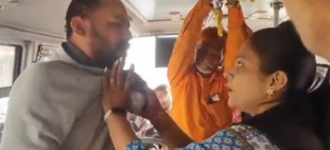 VIDEO | ബസില്‍ മദ്യപിച്ച് ശല്യം ചെയ്തയാളെ കരണത്തടിച്ച് അധ്യാപിക, ഒന്നും രണ്ടുമല്ല, 26 തവണ; വിഡിയോ വൈറൽ