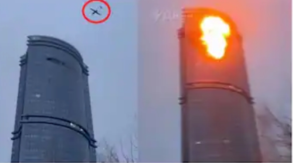 റഷ്യയിൽ 9/11 മോ‍ഡൽ ആക്രമണവുമായി യുക്രൈൻ, കൂറ്റന്‍ ബഹുനില കെട്ടിടങ്ങളിലേക്ക് ഡ്രോണുകൾ ഇടിച്ചുകയറ്റി- വീഡിയോ