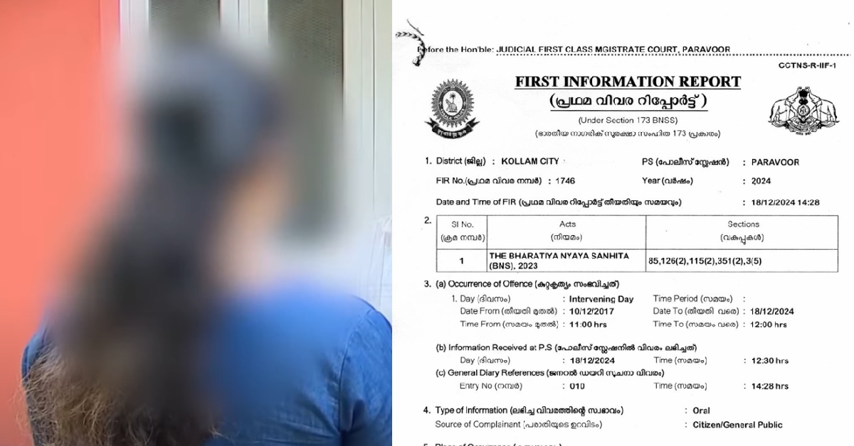 യുവതിയുടെ പരാതിയില്‍ ഭാരതീയ ന്യായസംഹിത (ബിഎന്‍എസ്) 85, 126 (2), 115 (2), 351(2), 3(5) വകുപ്പുകള്‍ പ്രകാരമാണ് കേസെടുത്തിരിക്കുന്നത്. കേസില്‍ പരവൂര്‍ പൊലീസ് തന്റെ മൊഴിയെടുത്തുവെന്നും എന്നാല്‍ അതില്‍ താന്‍ തൃപ്തയല്ലെന്നും യുവതി പറഞ്ഞു. കൊല്ലം സിറ്റി പൊലീസ് കമ്മീഷണര്‍ ചിത്ര തെരേസ ജോണിനെ കണ്ട് കാര്യങ്ങള്‍ ധരിപ്പിച്ചിരുന്നു. സത്യാവസ്ഥ മനസിലാക്കി മാഡം കൂടെ നിന്നു. എല്ലാ പിന്തുണയും വാഗ്ദാനം ചെയ്തിട്ടുണ്ടെന്നും യുവതി പറഞ്ഞു.