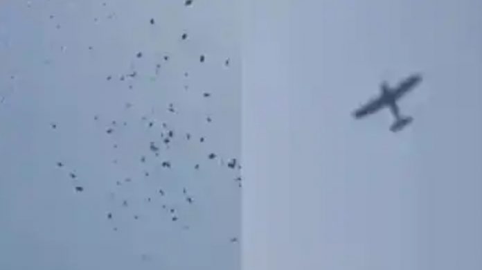 ‘വധുവിന്റെ പിതാവിന്റെ അഭ്യര്ത്ഥന…മകന്റെ വിവാഹത്തിന് വിമാനം വാടകയ്ക്കെടുത്ത് വധുവിന്റെ വീടിന് മുകളില് ലക്ഷക്കണക്കിന് രൂപ എറിഞ്ഞ് വരന്റെ പിതാവ്’ എന്ന കുറിപ്പോടെയാണ് വീഡിയോ എക്സ് പ്ലാറ്റ്ഫോമിൽ പങ്കുവെച്ചത്. വധുവിന്റെ വീടിന് മുകളിലൂടെ താഴ്ന്ന പറക്കുന്ന വിമാനത്തില് നിന്ന് ലക്ഷങ്ങള് താഴേക്ക് വീഴുന്നതാണ് വീഡിയോയില്. ഇത് കണ്ട് നില്ക്കുന്ന ആളുകളെയും വീഡിയോയില് കാണാം.