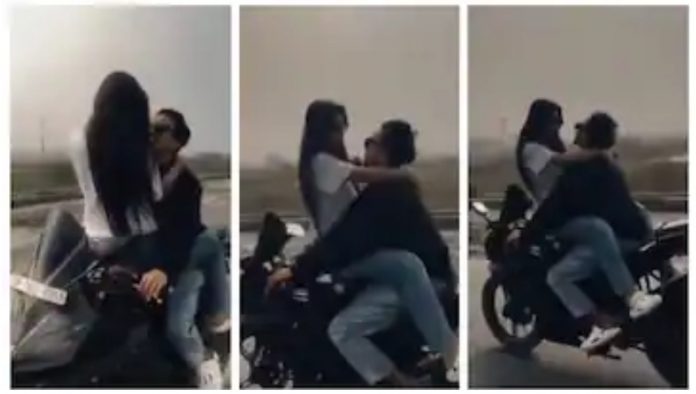 ഓടുന്ന ബൈക്കിൽ ചിത്രീകരിച്ച അപകടകരമായ റൊമാന്റിക് സ്റ്റണ്ടിന്റെ വീഡിയോ സമൂഹ മാധ്യമങ്ങളില് വൈറലായതിനെത്തുടർന്ന് കാൺപൂർ പോലീസ് ദമ്പതികൾക്കെതിരെ കേസെടുത്തു. രോഷവും ആശങ്കയും ഉളവാക്കുന്ന വീഡിയോ എല്ലാ ട്രാഫിക് നിയമങ്ങളും സുരക്ഷാ മാനദണ്ഡങ്ങളും ലംഘിച്ച് കൊണ്ടാണ് ചിത്രീകരിച്ചിരിക്കുന്നത്.