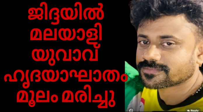 ജിദ്ദയിൽ മലയാളി യുവാവ് ഹൃദയാഘാതം മൂലം മരിച്ചു