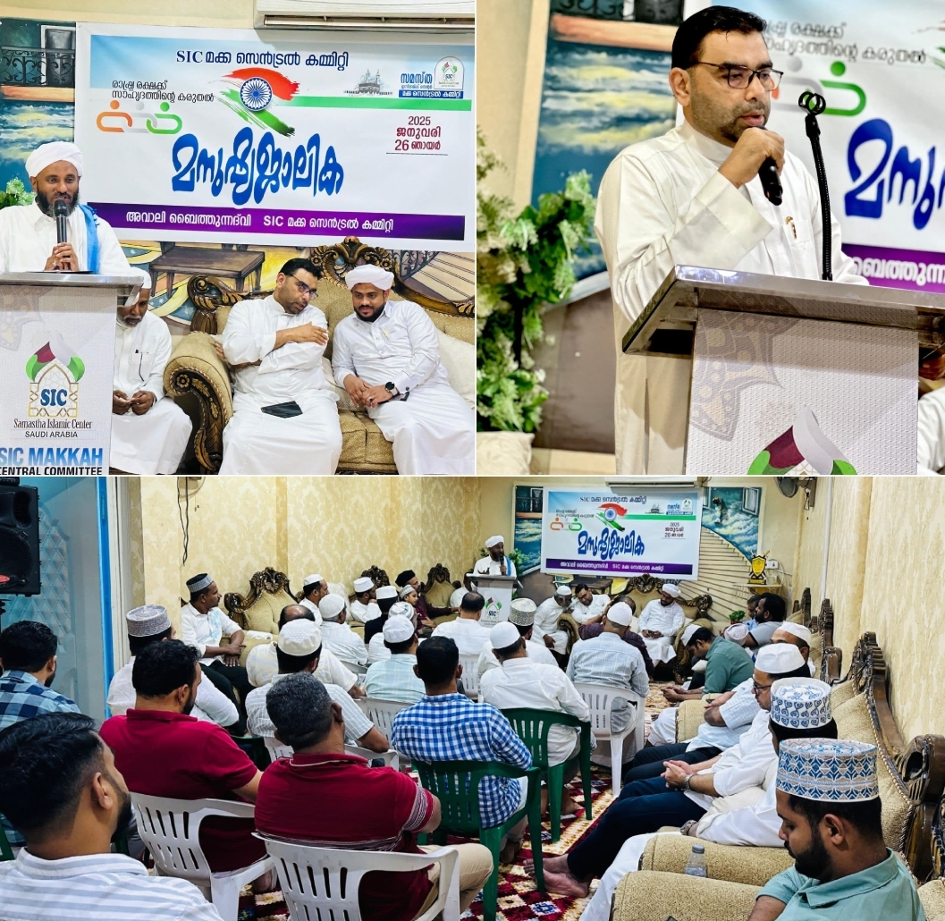 മക്ക: ‘റിപ്പബ്ലിക് ദിനത്തിൽ രാഷ്ട്ര രക്ഷക്ക് സൗഹൃദത്തിൻറെ കരുതൽ എന്ന പ്രമേയത്തിൽ സമസ്ത ഇസ്ലാമിക് സെൻറർ മക്ക സെൻട്രൽ കമ്മിറ്റി മനുഷ്യജാലിക നടത്തി. മുസ്തഫ അഷ്റഫി കക്കുപ്പടി മുഖ്യപ്രഭാഷണം നടത്തി. ആദർശത്തിലൂന്നിയ സൗഹൃദത്തിൻറെ കരുതലാവണമെന്നും നാം ഇന്ന് കാണുന്ന എല്ലാ ഐശ്വര്യങ്ങളുടെയും കാരണം മുസ്ലിം ഉമ്മത്ത് ഒന്നിച്ചു നിന്നതിന്റെ ഉദാഹരണങ്ങളാണെന്നും അദ്ദേഹം പറഞ്ഞു.