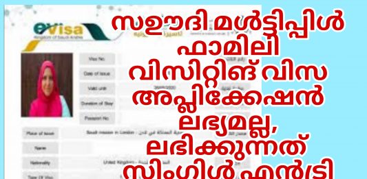 സഊദി മൾട്ടിപ്പിൾ ഫാമിലി വിസിറ്റിങ് വിസ അപ്ലിക്കേഷൻ ലഭ്യമല്ല, ലഭിക്കുന്നത് സിംഗിൾ എൻട്രി മാത്രം