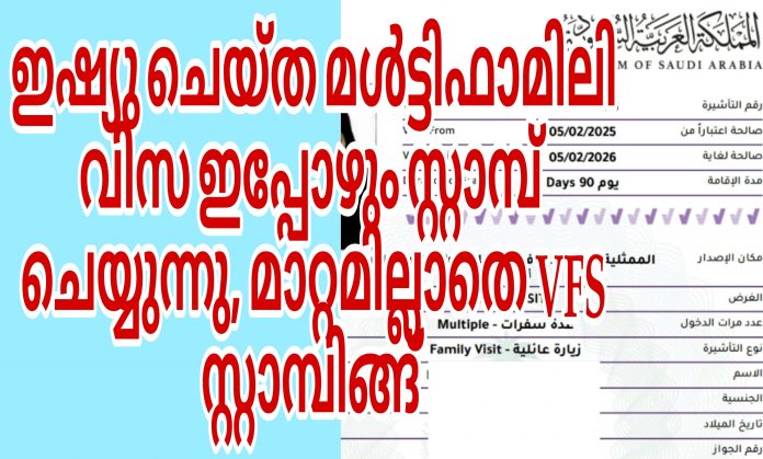 ഇഷ്യു ചെയ്ത മൾട്ടിഫാമിലി വിസ ഇപ്പോഴും സ്റ്റാമ്പ് ചെയ്യുന്നു, മാറ്റമില്ലാതെ VFS സ്റ്റാമ്പിങ്ങ്